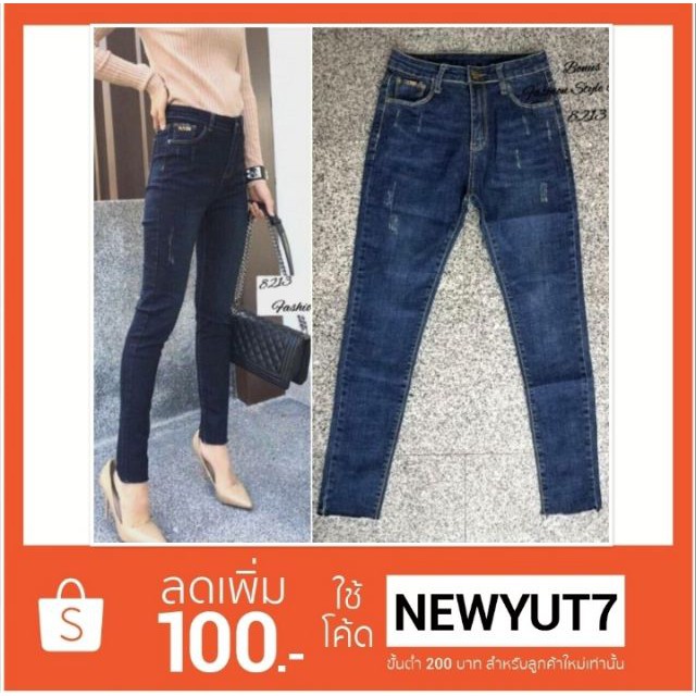 | 👖กางเกงยีนส์💖สกินนี่เอวสูง✌️ขาดเส้น(NO.8668-2)💕💕 |