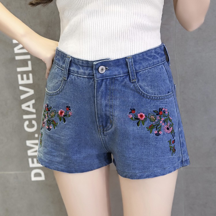 กางเกงยีนส์ ขาสั้ั้น ปักลายดอกไม้
