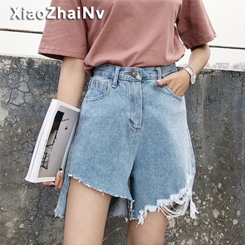 | ขาสั้น เสื้อ ชายไม่เท่ากัน บางเฉียบ ผ้าแฟชั่นผู้หญิง กางเกงยีนส์ สไตล์ |