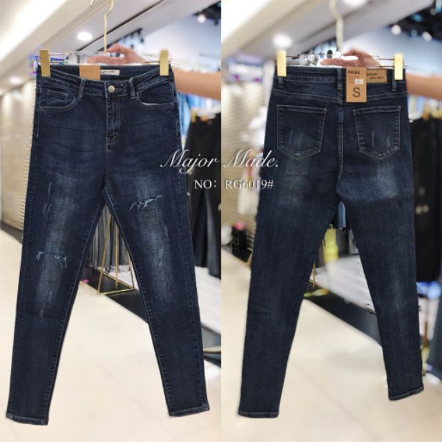 | เอวสูงฟอกเข้มทรงสกินนี่ งานจริงสีจริงคือสวยมาก กางเกงยีนส์ |