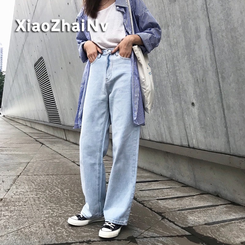 กางเกงยีนส์ ขากว้าง เอวสูง สไตล์เกาหลี ถูก ชุด ลดราคา ชุดเดรสสั้น PinkSun