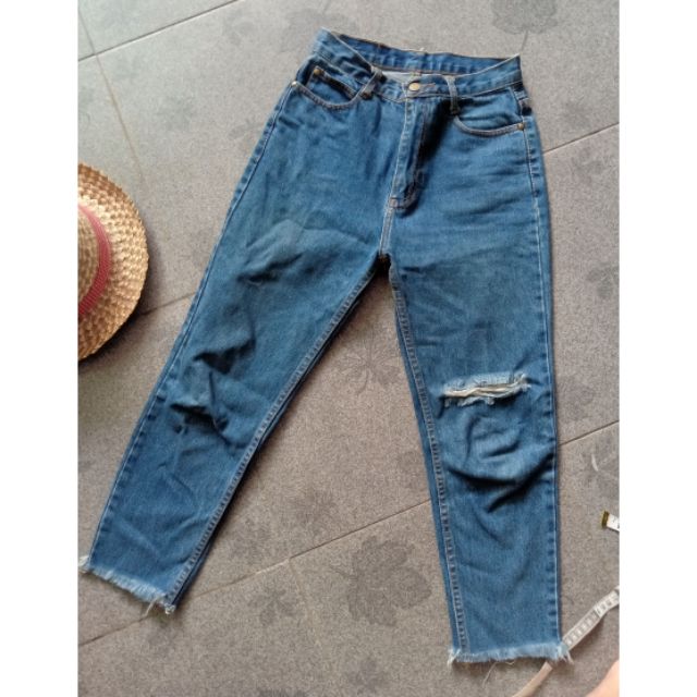| เอวสูง กางเกงยีนส์แต่ง ตัดปลาย ขาดเข่า size-M กางเกงยีนส์ทรงบอย กางเกงยีนส์ |