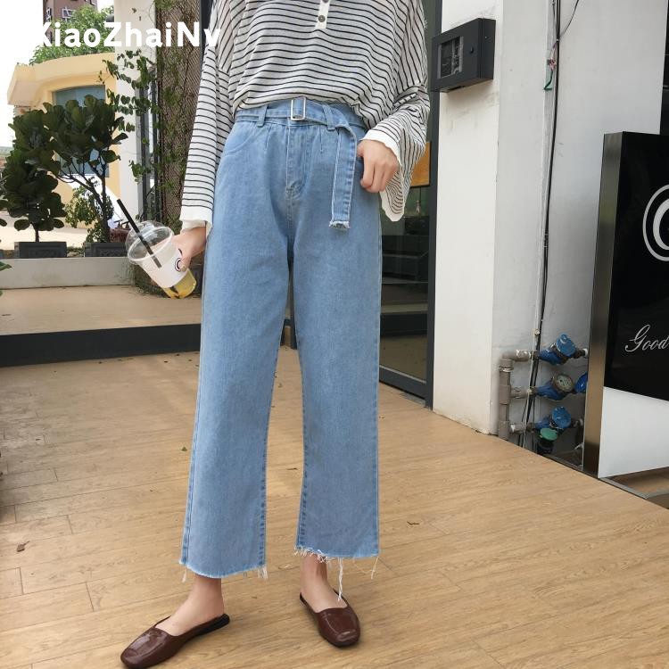 | กางเกงเอวสูง สไตล์เกาหลี กางเกงยีนส์ ทรงหลวม HOT |