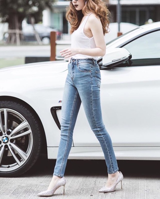 | กางเกงยีนส์ขายาวสำหรับสตรีเอวสูง |