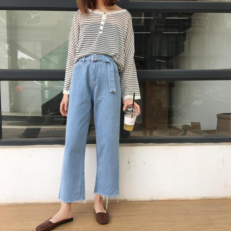 | กางเกงขากว้าง AAกางเกงยีนส์ บางเฉียบ เสื้อผ้าแฟชั่นผู้หญิง |