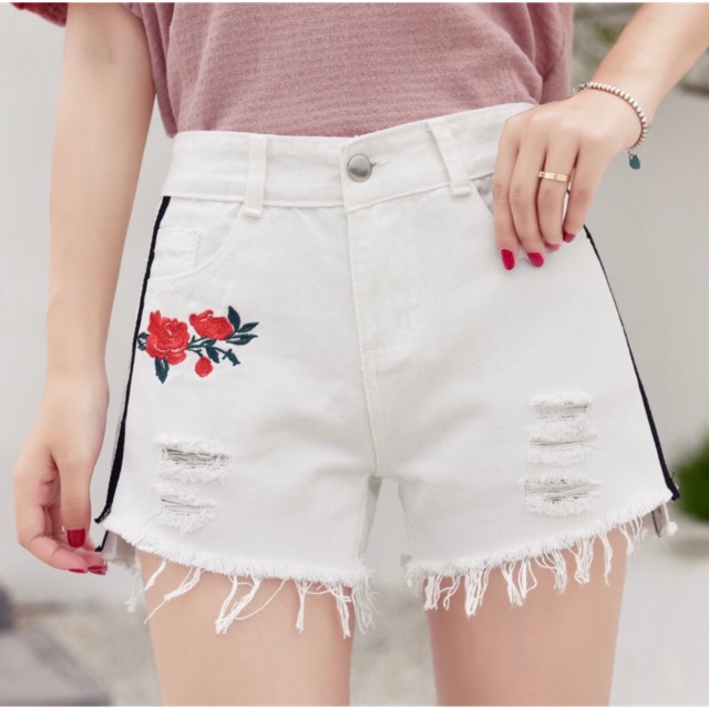 | กางเกงยีนส์ขาสั้ั้นปักลายดอกไม้ |