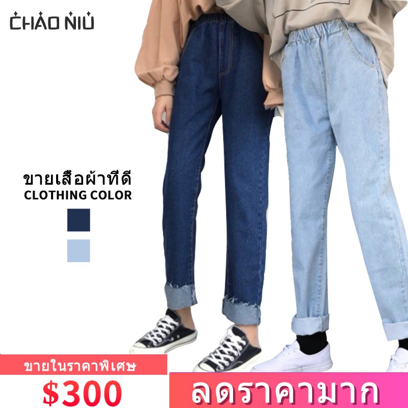 | กางเกงยีนส์ขายาวเอวสูงสไตล์เกาหลีสำหรับผู้หญิง |