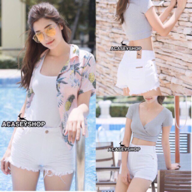 กางเกงยีนส์ ขาสั้นสี ขาวยอดนิยม