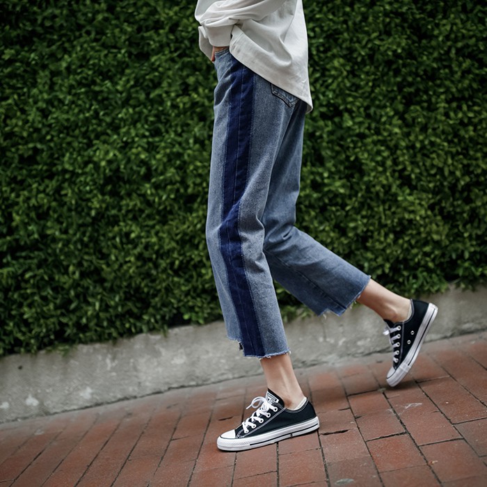 JHXC เกาหลีของ เอวสูงหลวม BF ขอบลมกว้างกางเกงยีนส์นักเรีย
