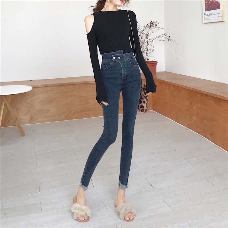 | กางเกงยีนส์เอวสูงสไตล์เกาหลีสำหรับผู้หญิง |