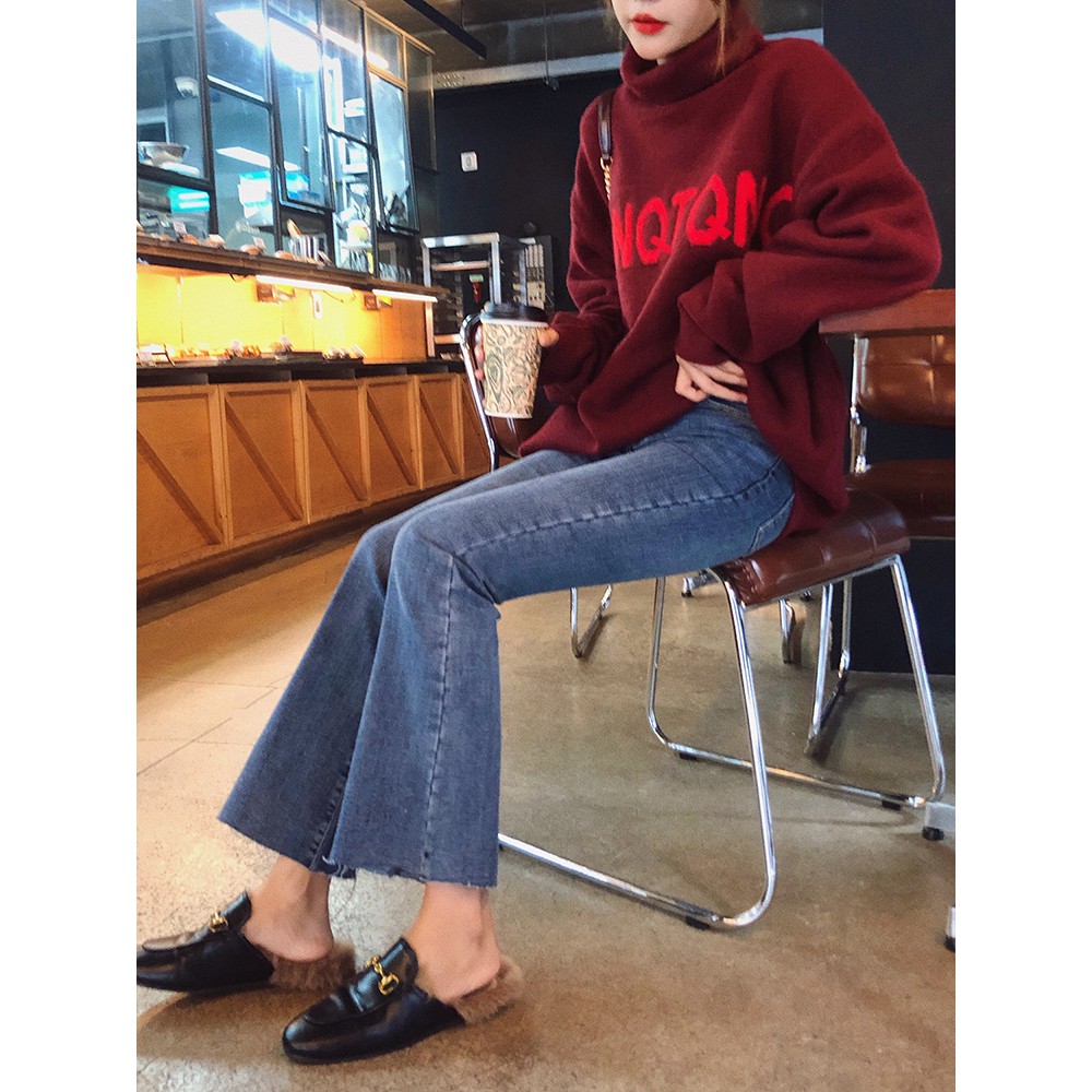 | wind Autumn loo wide Tide Korean academy 2018 waist Hundred Myat high winter and |