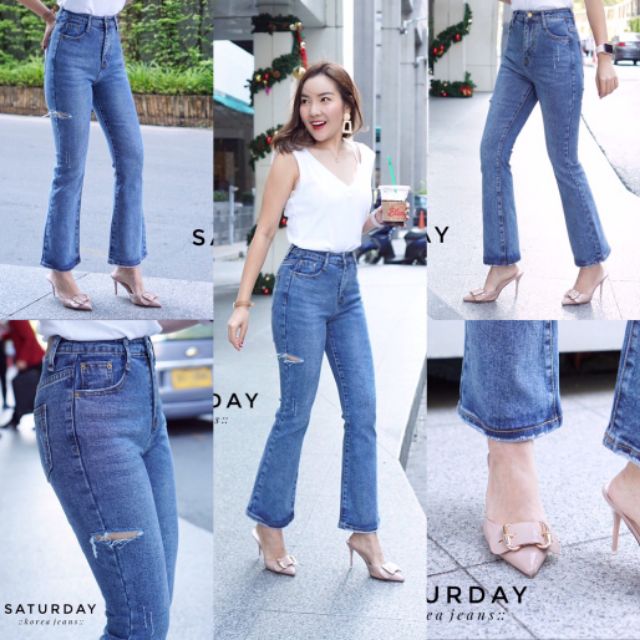 NEW-arrival instock กางเกงยีนส์ ผ้ายืด ทรง ขาบาน ผ้ายืดใส่สบาย