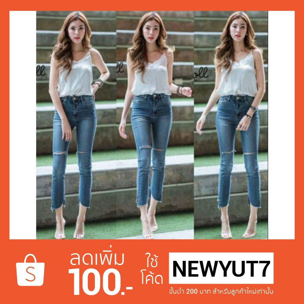 | 👖กางเกงยีนส์ทรงสกินนี่❤️เอวสูงขาดข้างสุดเซ็กกกซี่💋(8729) |