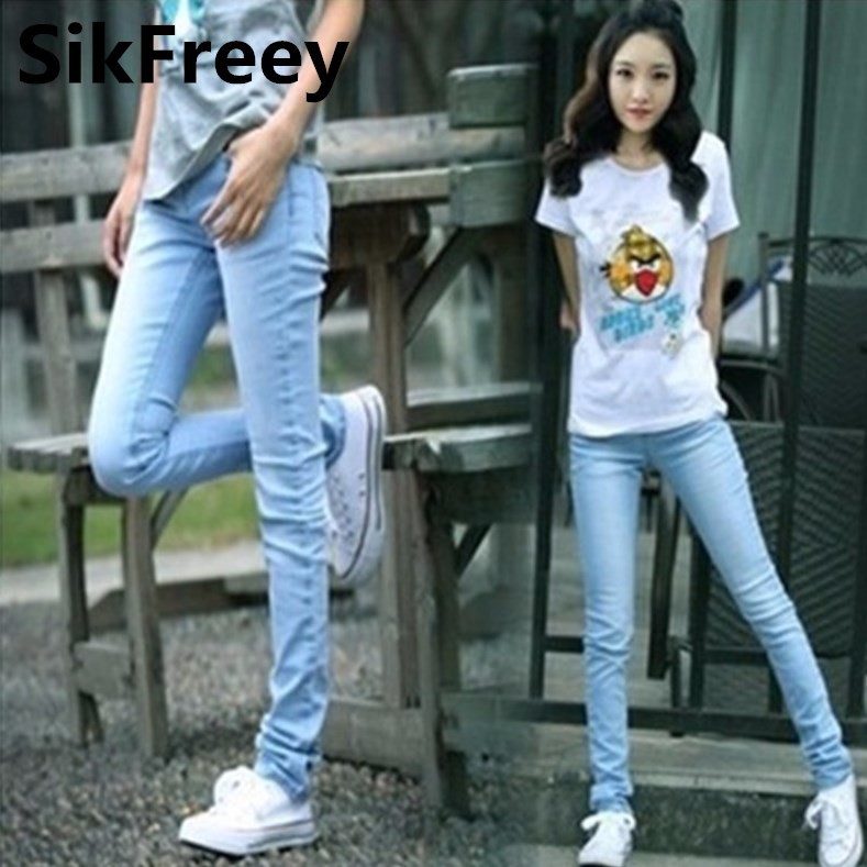ขายดีที่สุดแฟชั่นผู้หญิงท้องฟ้ากางเกงยีนส์ยาวสีฟ้า