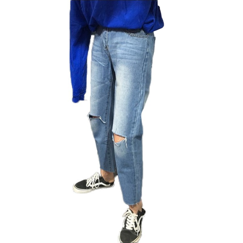 | กางเกงยีนส์ทรงหลวมสีฟ้าอ่อนสำหรับสตรี ราคาส่ง ขายดี สินค้า นำเข้า แซก ชุด |