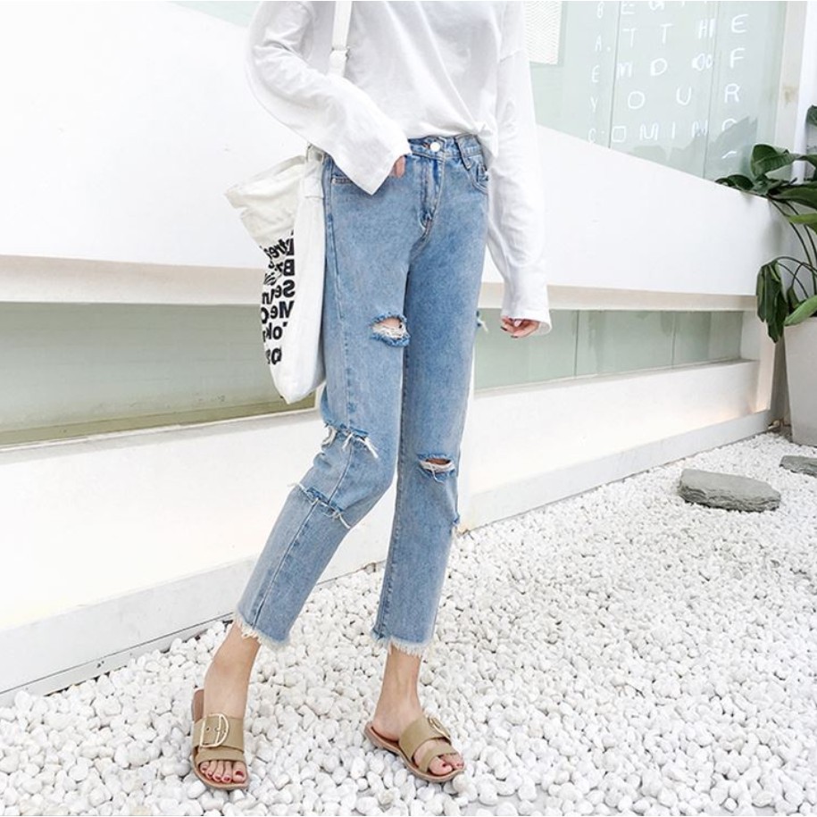 สินค้ากางเกงยีนส์ทรงบอย ขาเดฟ ขาดข้าง