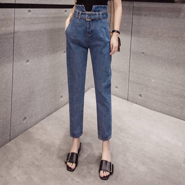 | กางเกงยีนทรงบอยแต่งเอวคล้ายเข็มขัดงานสวยมากคะ |