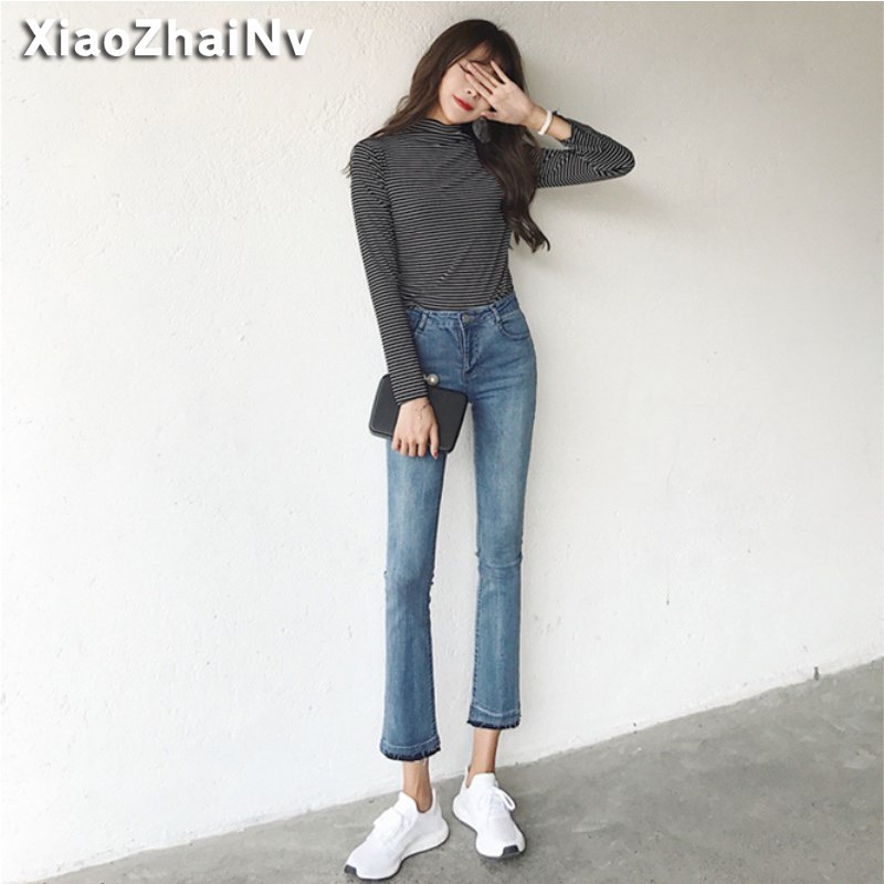 สไตล์เกาหลี กางเกงยีนส์ เอวสูง กางเกงยีนส์ดินสอ กางเกงยีนส์บางเฉียบ