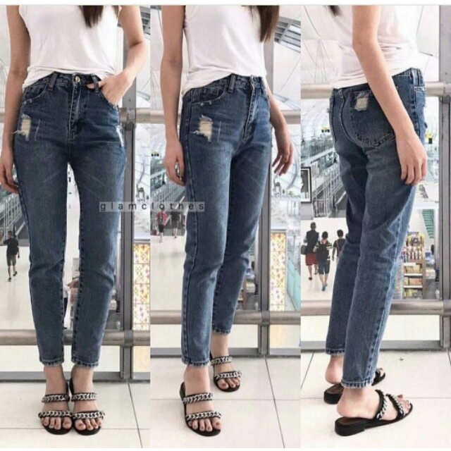 | 👖กางเกงยีน🌷สไตล์เกาหลี🇰🇷ไม่ขาด(No.6882) |