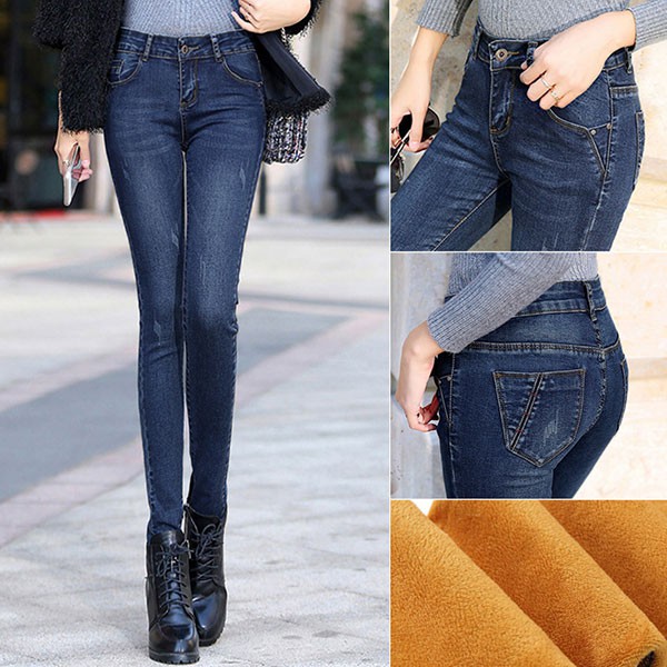 ใส่ ติดลบได้ตัวเดียวเอาอยู่ กางเกงยีนส์กันหนาว ทรงสลิม หนาซับกำมะหยี่ 11717X