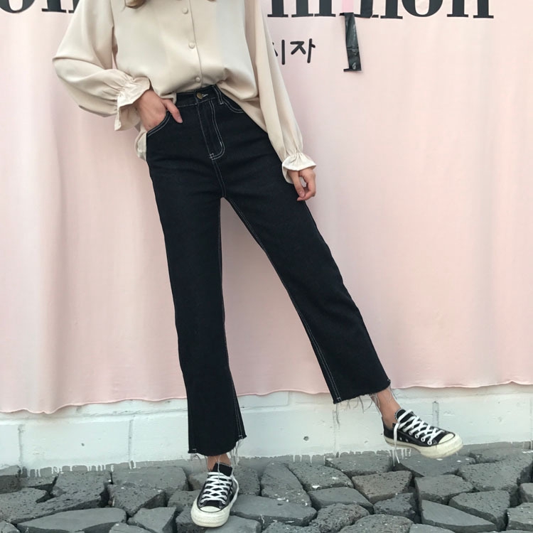 | 👌 เวอร์ชั่นเกาหลีของแฟชั่นร้อนหลวมเอวสูงใหม่สีทึบตรง ผ้าดีมากใส่สบายสไตล์วินเทจหลุ่ยปลาย กางเกงยีนส์ |