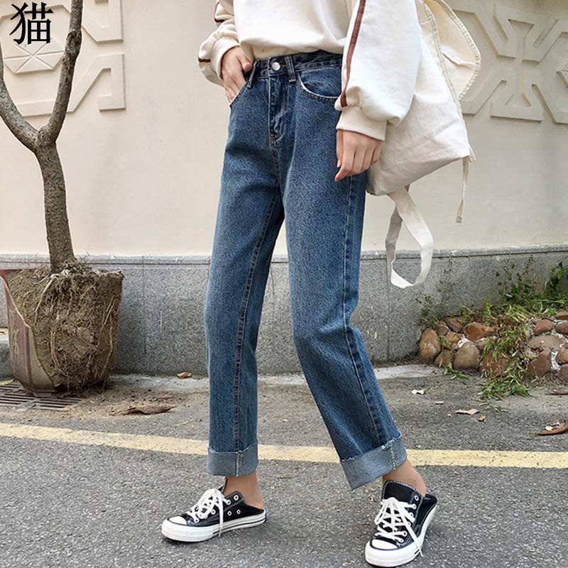 | 2018 ฤดูใบไม้ร่วงและฤดูหนาวผู้หญิงเกาหลีรุ่นใหม่ของกางเกงยีนส์สีฟ้าหลวมกางเกงยีน |