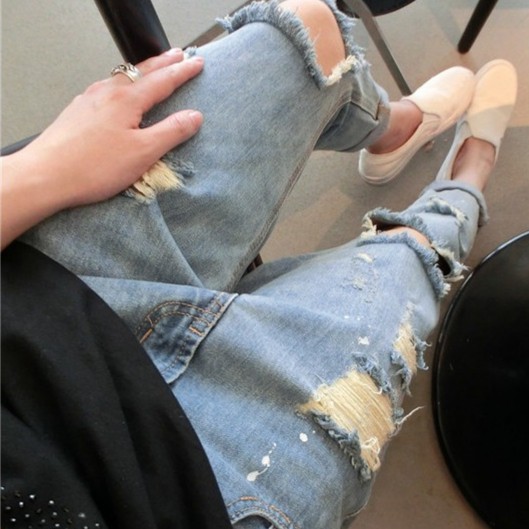 | ♕New♕ กางเกงยีนส์ขายาวเอวทรงไม่สมมาตรสำหรับผู้หญิง |