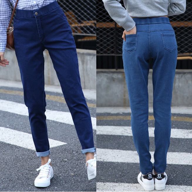 S-XXLกางเกงยีนส์ ผ้ายึด สีน้ำเงินอ่อน และน้ำเงินเข้ม #2100