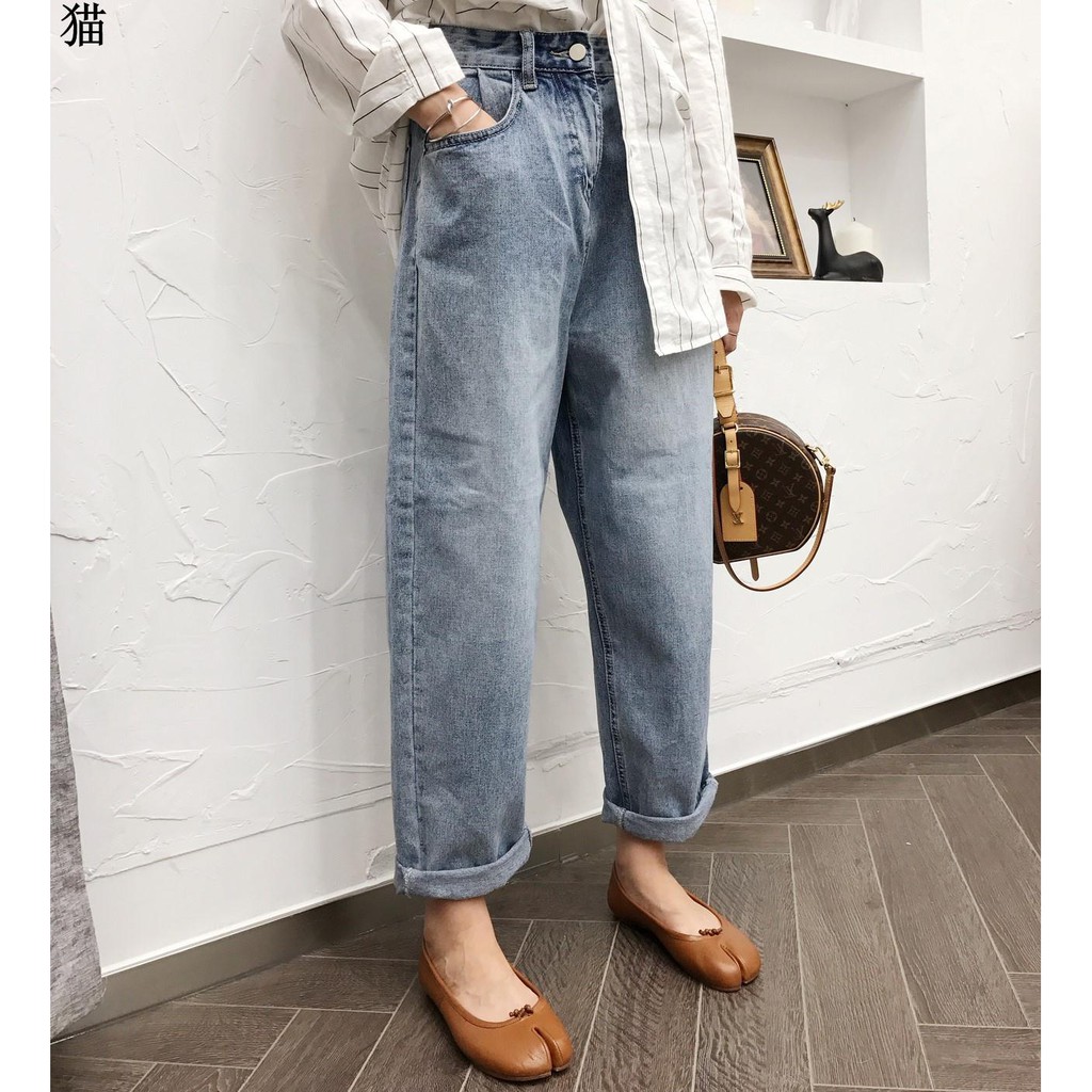| ฤดูใบไม้ร่วงรุ่นใหม่ของเกาหลีเอวสูงเก๋ไก๋หลวมเป็นนักเรียนป่าบางตรงกางเกงยีน 2018 |