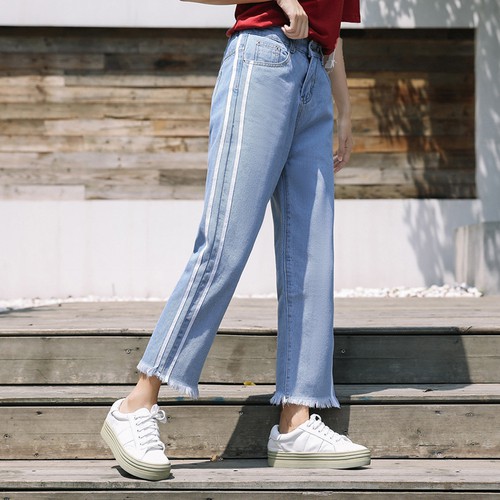 กางเกงยีนส์ทรงตรง เอวสูง สไตล์เกาหลี
