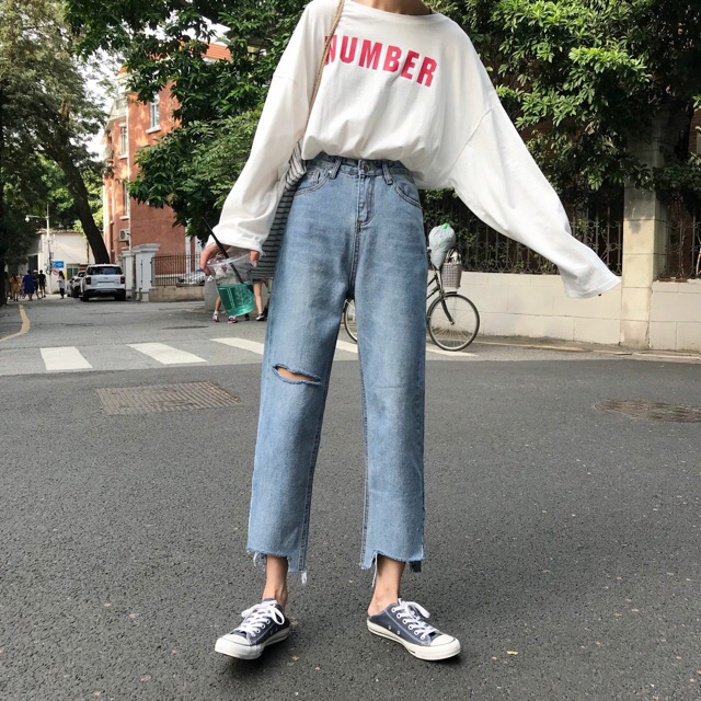 | ผ้ายีนส์แท้ 🔥โปรโมชั่น กางเกงยีนส์ สีซีด ลดทั้งร้าน🔥 สินค้าพร้อมส่งค่ะ เอวสูง Boyfriend 9.9 ทรงพับขา |
