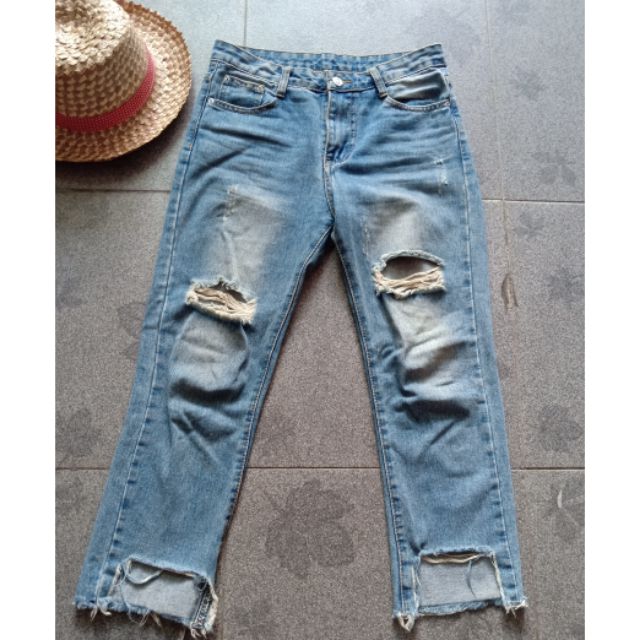 | กางเกงยีนส์แต่ง ขายาว กางเกงยีนส์ กำลังฮิตค่ะ ขาดปลาย กางเกงยีน สไตล์เกาหลี ขาดเข่า ขาด |