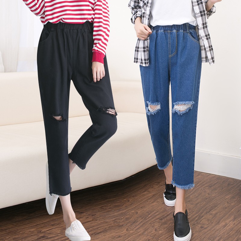 กางเกงยีนส์ ขายาว แต่ง ขาด พิมพ์ลาย โค้ดแฟชั่นสตรี เดรส ราคา ชุดเดรสยาว