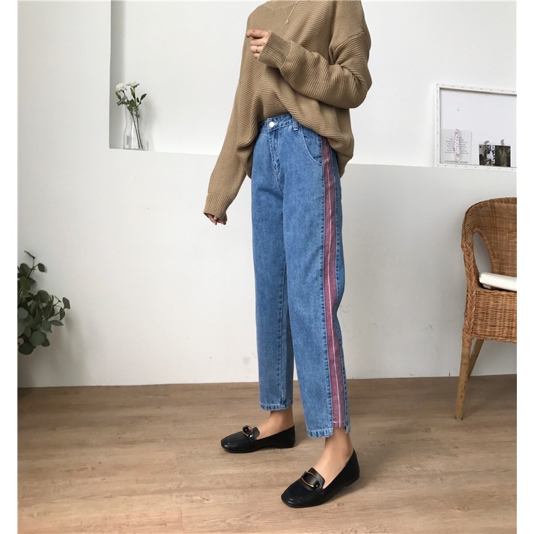 กางเกงยีนส์ทรงตรง ชุดเดรสสั้น ขายส่ง รีวิว ชุดราตรีสั้น ชุด ชุดเดรสยาว แซก นำเข้า C433 Long-stripe jeans