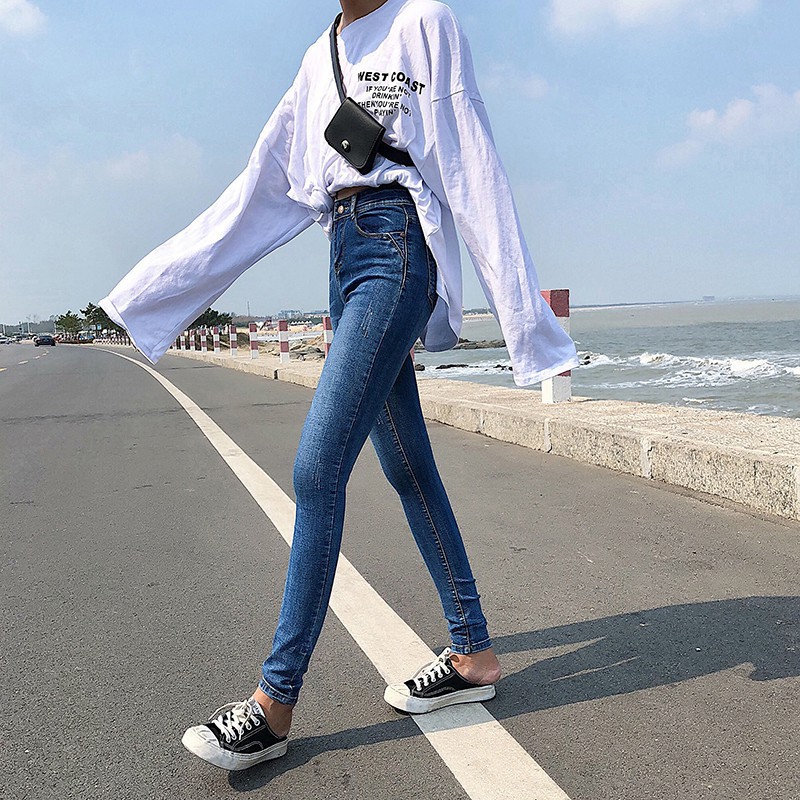 | กางเกงยีนส์เอวสูงสไตล์เกาหลีสำหรับผู้หญิง |
