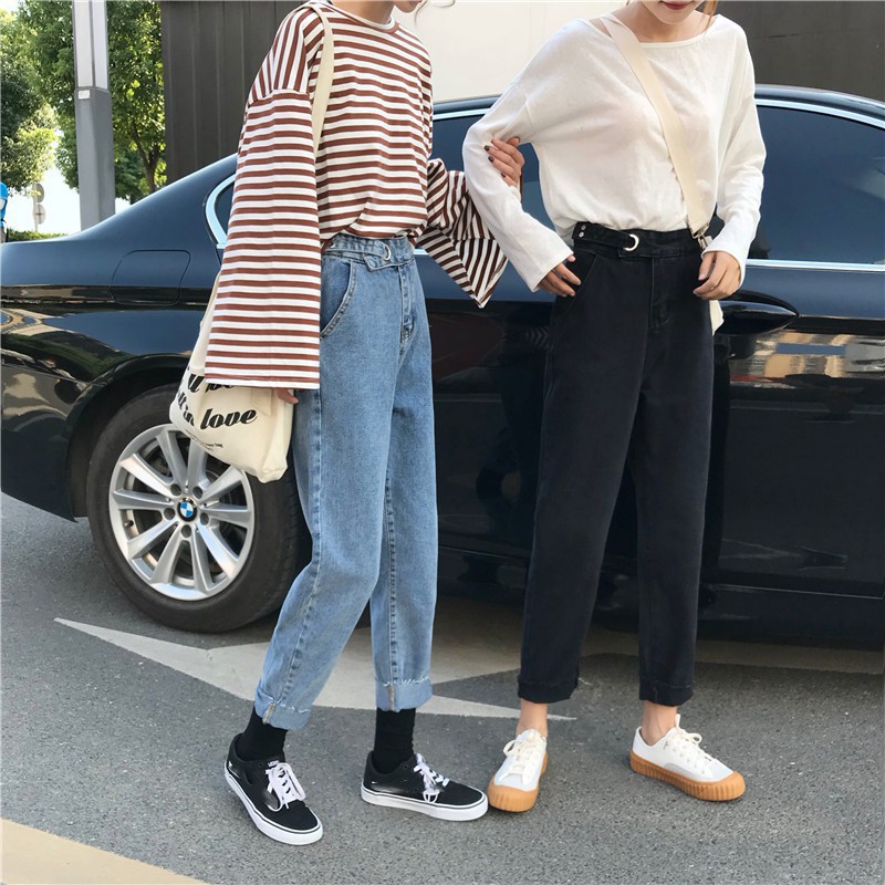| กางเกงยีนส์ทรงหลวมเอวสูงสไตล์เกาหลีสำหรับผู้หญิง |